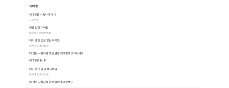 - 초대, 수락, 공개범위 등을 설정할 수 있습니다.