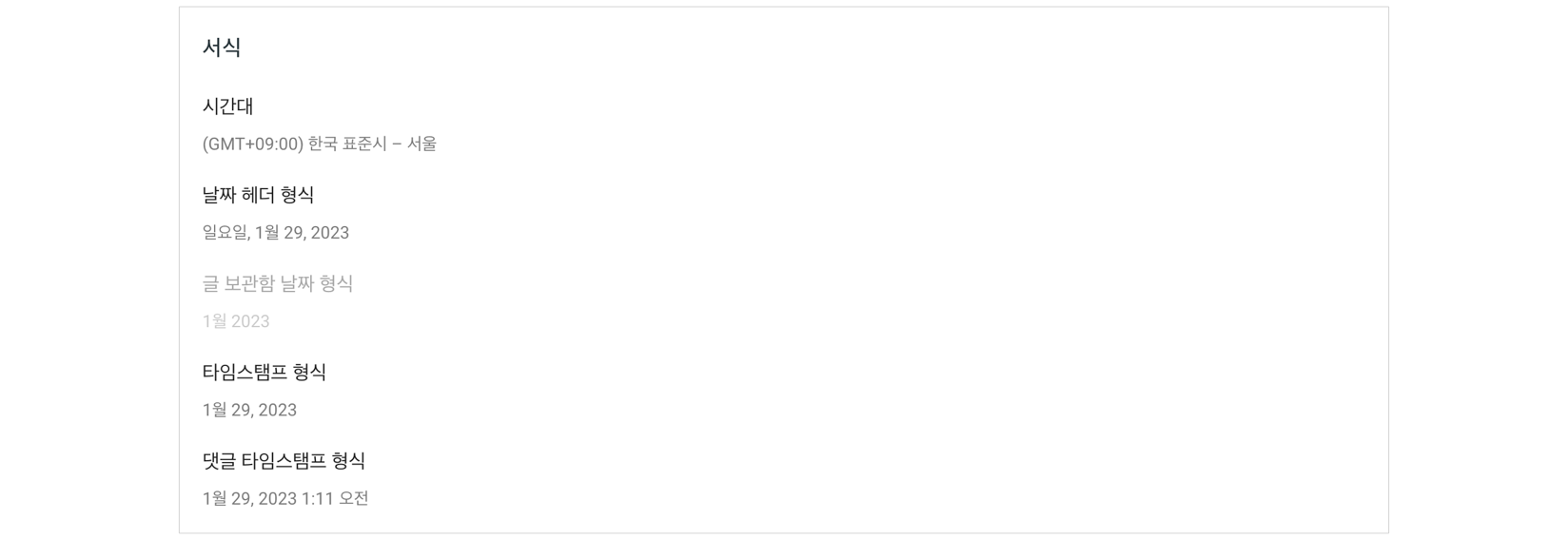 - 대한민국에서 블로그를 운영하는 경웋, 시간대를 선택해서 '한국 표준시 - 서울'을 선택합니다.