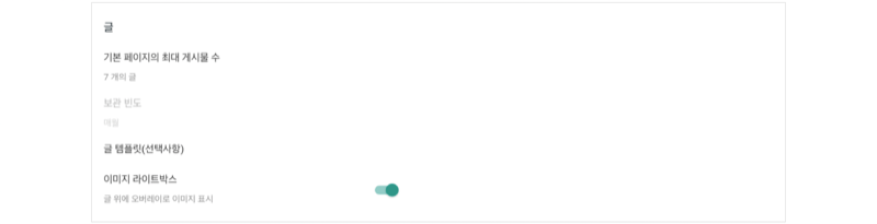 - 블로그 홈 화면에 게시될 포스팅의 갯수입니다.