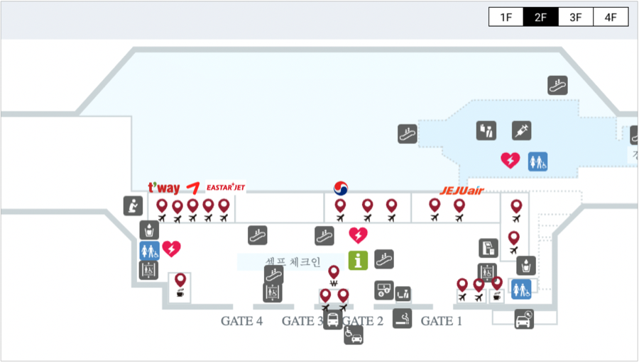 GATE 3,4: 아시아나, 티웨이항공, 이스타항공, 중화항공, 에바항공