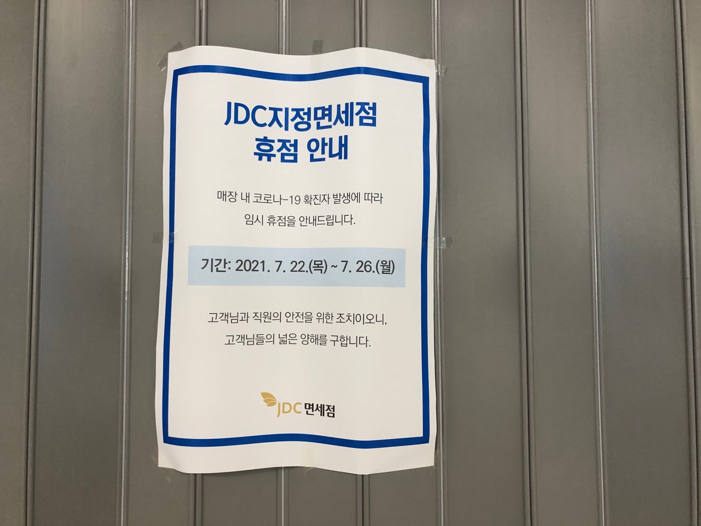 현재 제주공항 면세점은 코로나 확진자 발생으로 인해 운영중지 상태입니다.