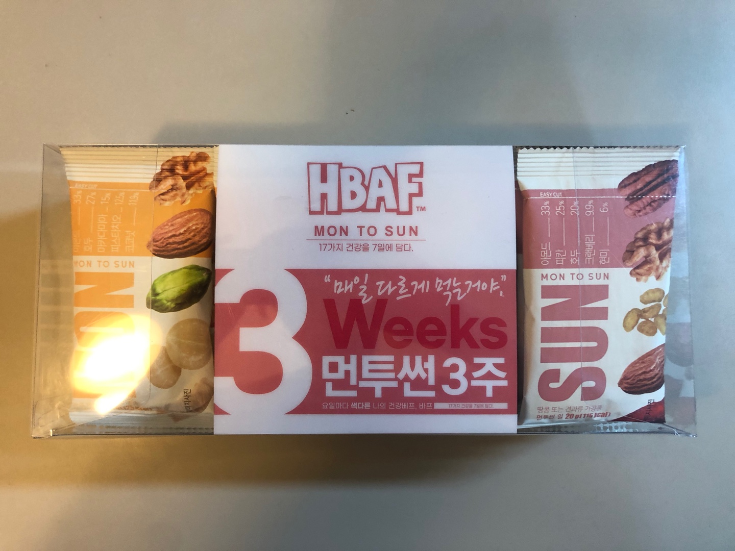 H는 묵음이라며ㅋㅋ 과감하게 마케팅하는 견과류 브랜드 바프입니다. 평소에 견과류를 엄청 좋아해서 마트에서 호두, 아몬드, 피스타치오, 피칸 등등 큰 봉지로 사다놓고 소분해서 먹고 있는데요. 요건 바프에서 나온 3주짜리 제품입니다!