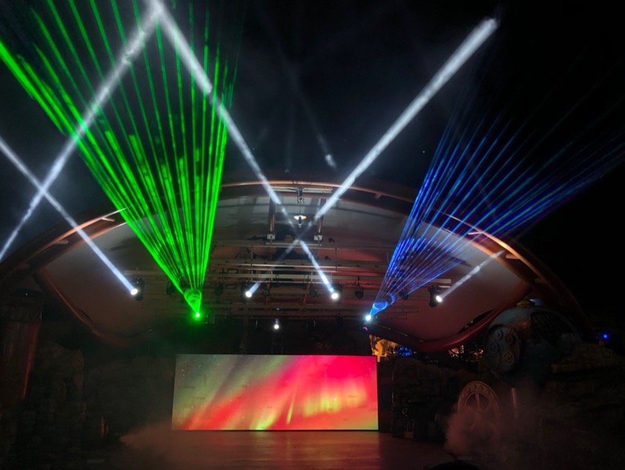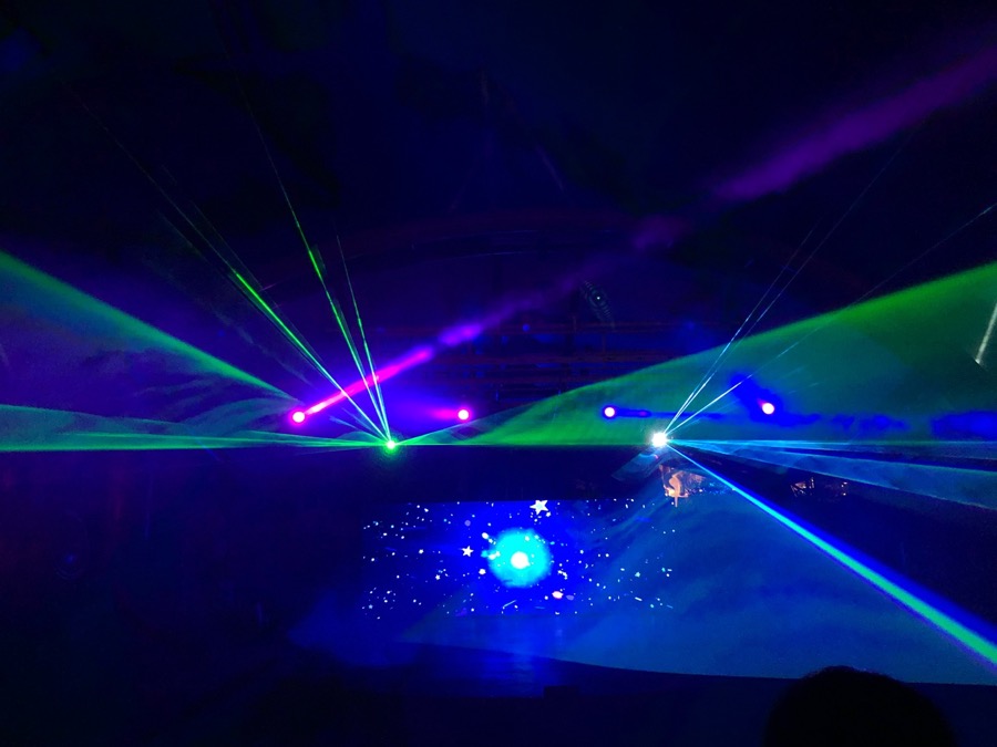 저희가 본 공연은 저녁 7:40분 이었네요. 시작전에 레이저가 더 잘보이게 해주는 연기가 공연장을 샤아아악 덮기 시작하면서 음악과 함께 레이저쇼가 시작됩니다.