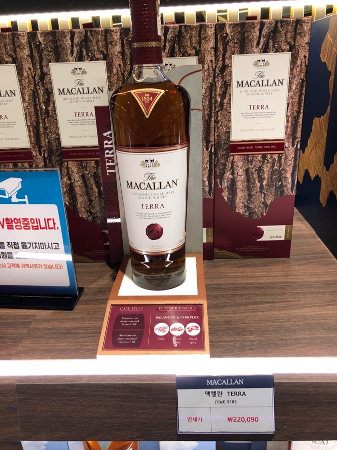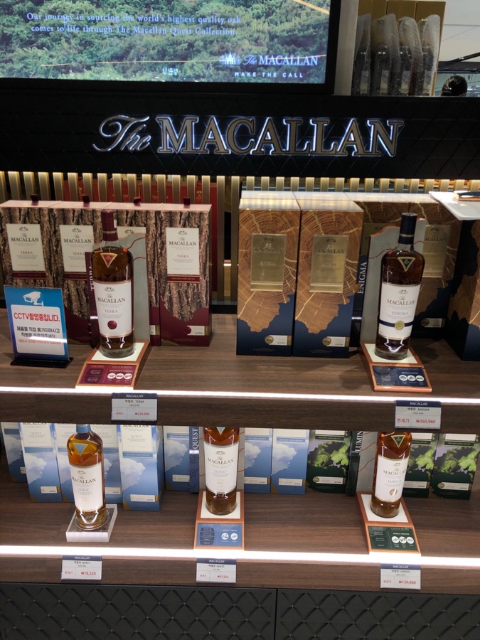 현재 5종류 판매중. 넘버3는 이제 끝났는지 보이지 않음. 맥켈란 인기답게 위에 소개한 아드백과는 달리 아주 잘 보이는 전면 넓은 공간에 광활하게 전시되어 있음.