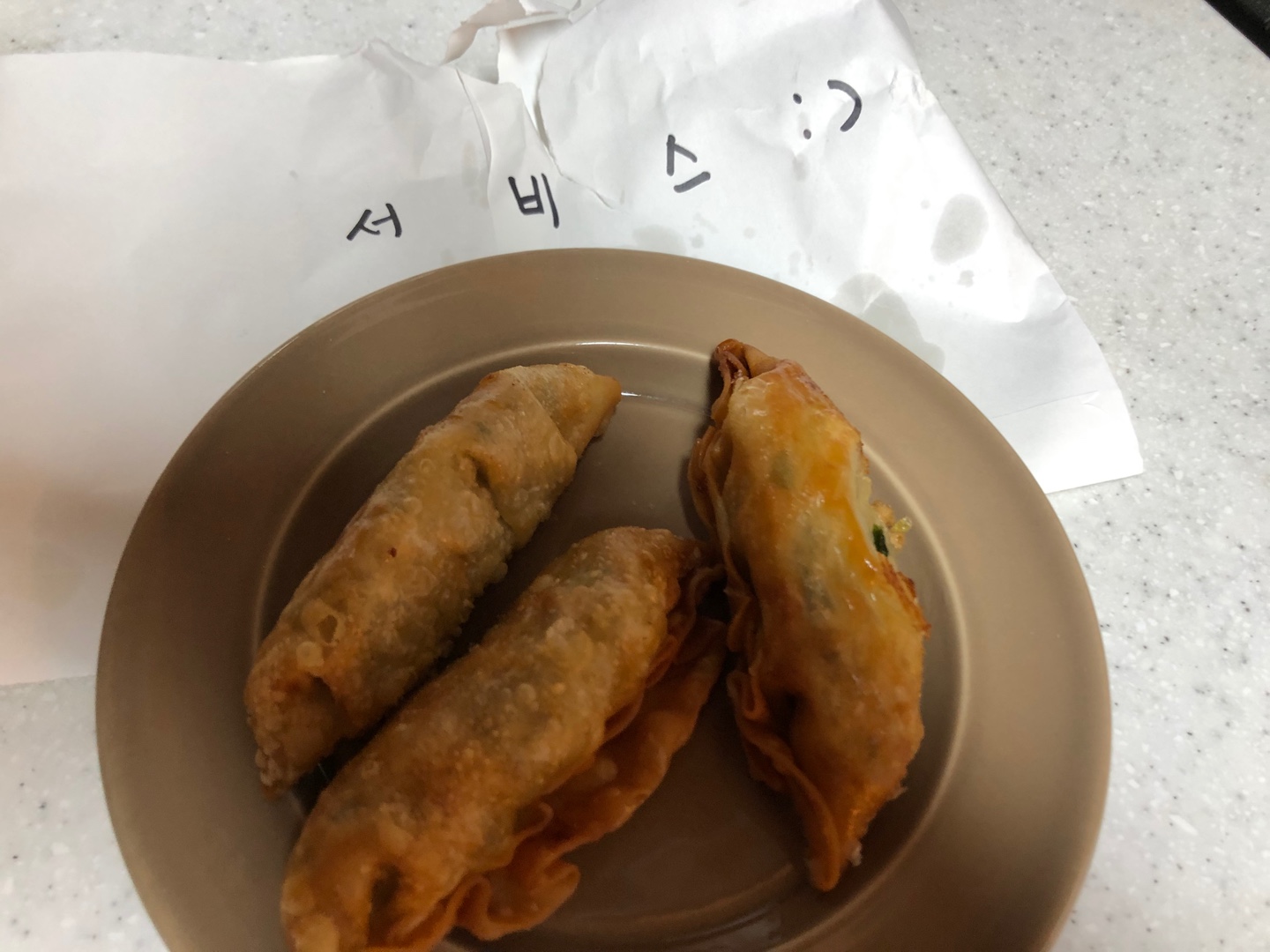 기분좋게 군만두? 튀김만두? 도 서비스로 챙겨주셨네요. 야호!