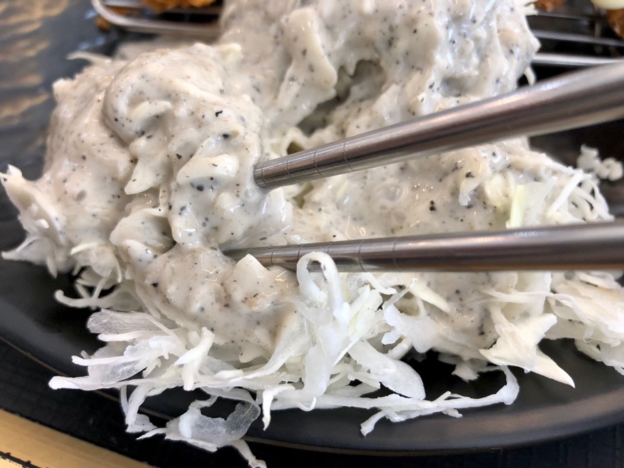 돈까스 고기가 확실히 두껍고 씹히는 맛이 좋았습니다. 반대로 표현하면 부드러운 텍스처의 식감이 아니어서 마지막에 돈까스에 온기가 없을때는 조금 딱딱해지더라고요. 안심이 아니라 등심이기도 하니까요.