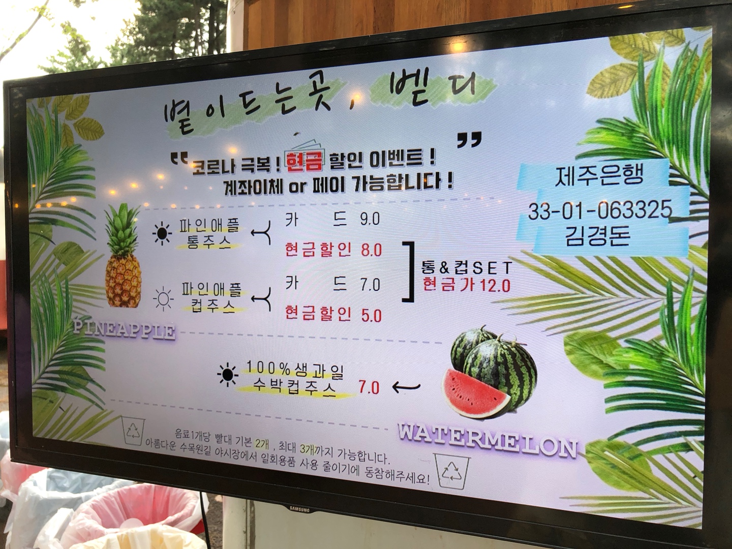간단히 벧디에서 수박쥬스랑 파인애플통쥬스 두 잔 사먹었네요!
