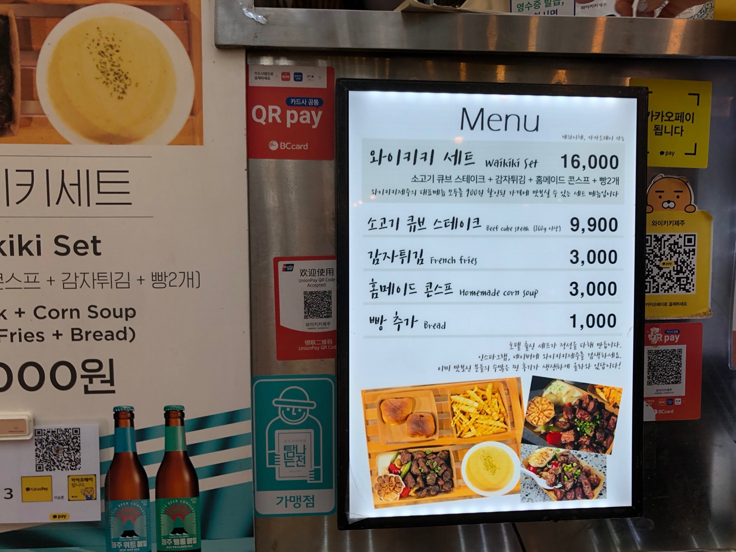 11. 와이키키제주(감자튀김, 큐브스테이크, 모닝빵, 옥수수스프)