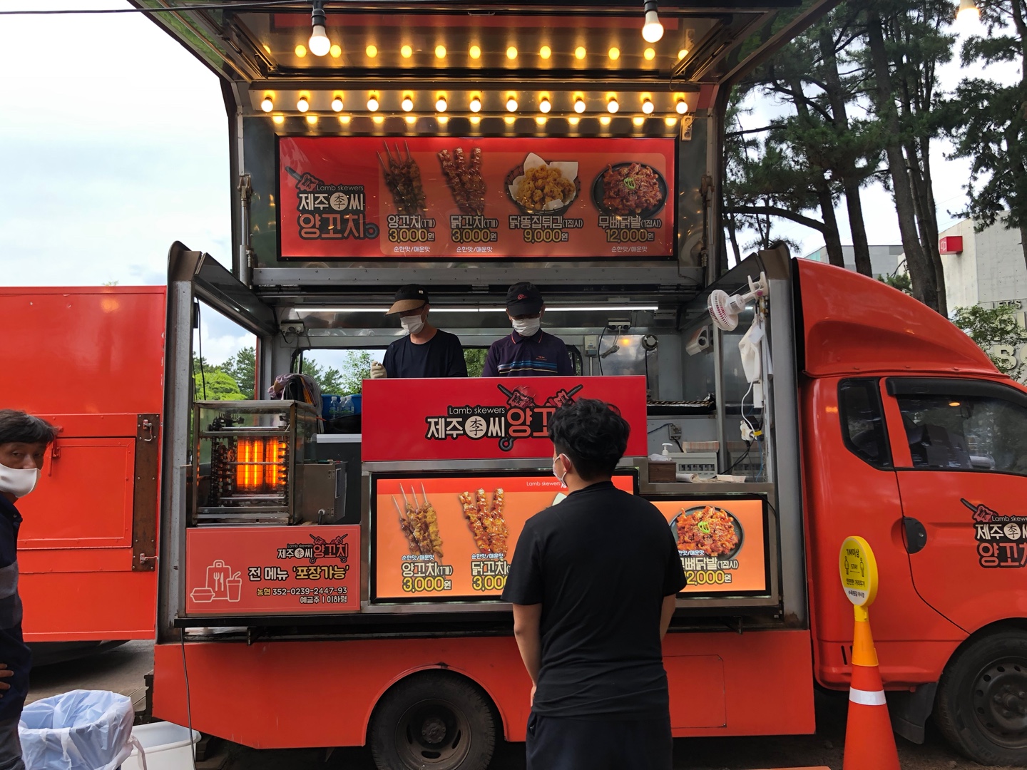 야시장에는 푸드트럭에서 다양한 음식을 파는데요!