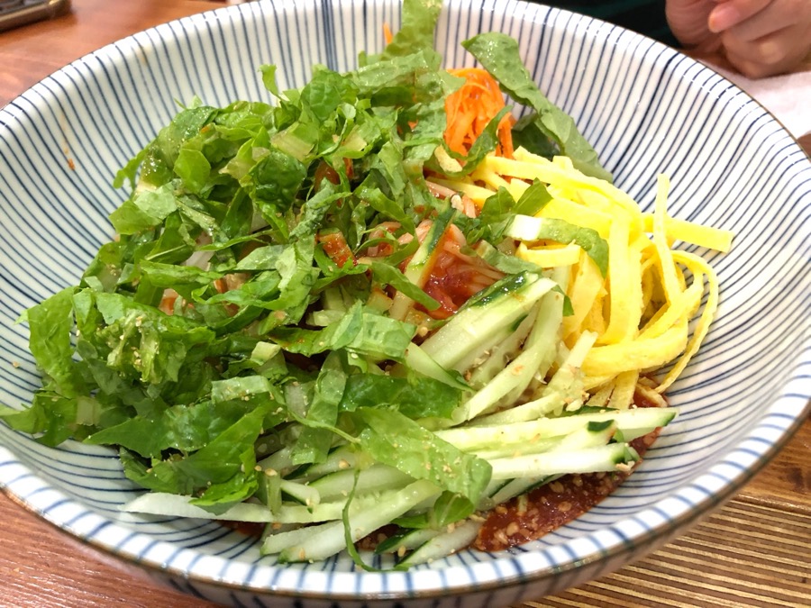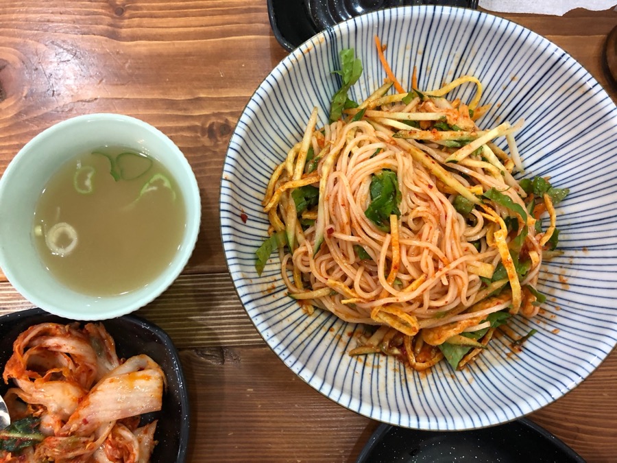 비빔국수는 멸치육수와 함께 나오고, 산도롱한면은 국수만 한 그릇 딱 나옵니다. 비빔국수 면은 일반 소면이 아니라 굵고 활력이 있습니다. 비빔양념도 맛이 강하지 않으면서 엄청 풍미가 있어서 면과 굉장히 잘어울려요! 아, 같이 서빙된 멸치육수ㅋㅋ 언제 먹어도 감동이 밀려옵니다.