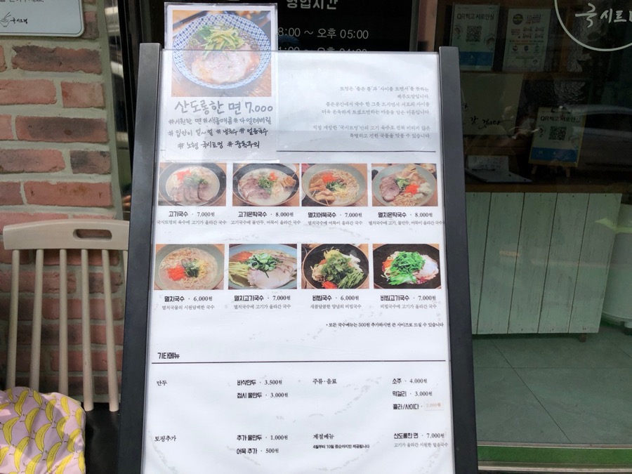오늘은 패스했지만, 기본으로 고기국수와 멸치국수도 진짜 여기 맛있습니다. 실패확률이 굉장히 낮아요.