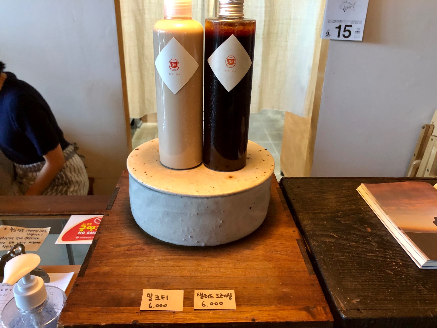 카운터 앞에서는 밀크티와 샐러드드레싱도 따로 구매할 수 있게 해두셨네요!
