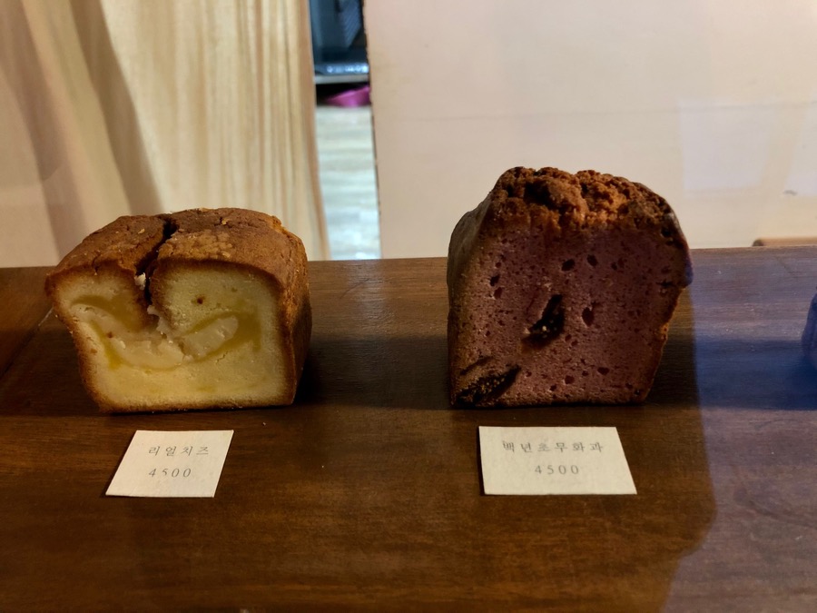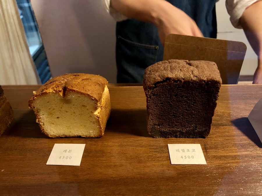판매하는 파운드케이크입니다. 사이즈에 비해 꽤 가격이 비싸네요? 조각 파운드케이크 외에도 밀크티랑 작은 소품 몇가지를 판매하고 계시더라고요.