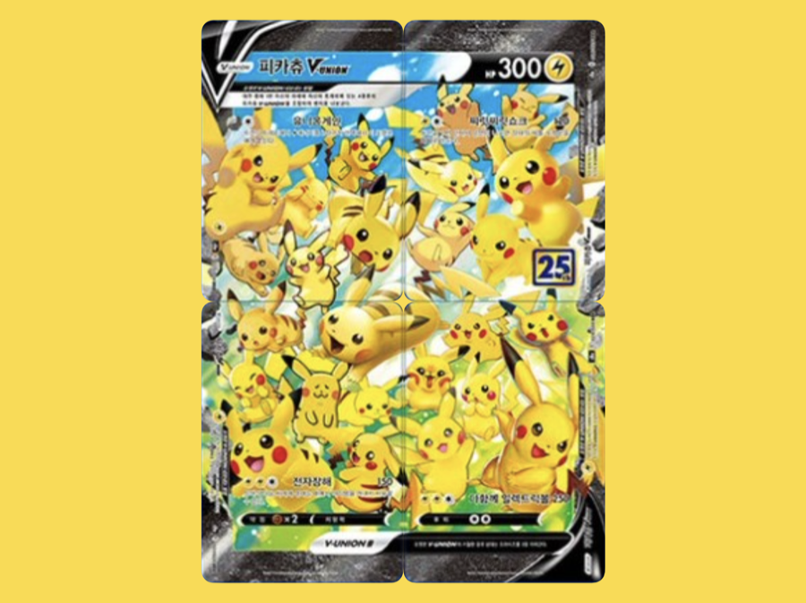 25명의 일러스트 작가가 그린 25마리의 피카츄가 4장의 카드에 꽉 차게 표현된 피카츄 V유니언 카드입니다. 4장이 모이면 1개의 완전체 카드가 만들어집니다! 너무 귀엽지 않나요?ㅎㅎ